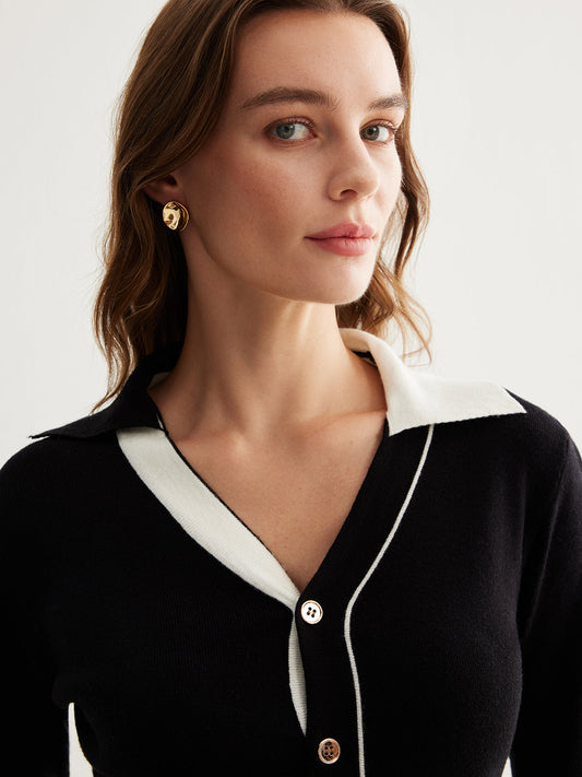 13% İndirimRenkli Blok Yaka Düğmeli Hırka