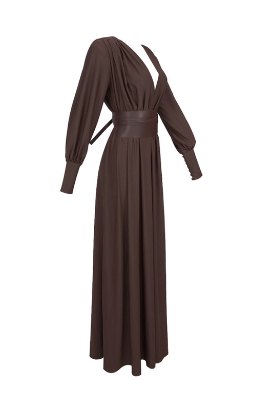 26% İndirimRuby Deri Kemerli Vatkalı Uzun Elbise