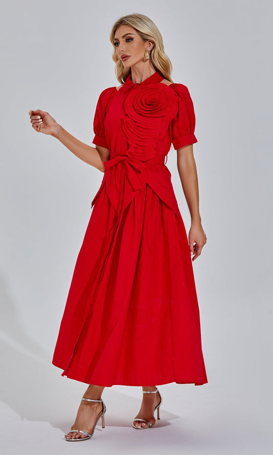 16% İndirimRui Kırmızı Çiçekli Maxi Elbise