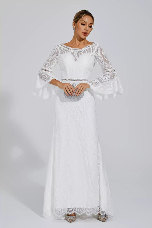 33% İndirimRylan Beyaz Dantelli Uzun Elbise