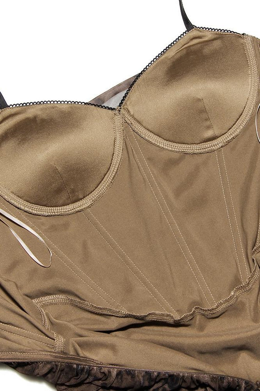 22% İndirimRuth Baskılı Korse Büzgülü File Midi Elbise