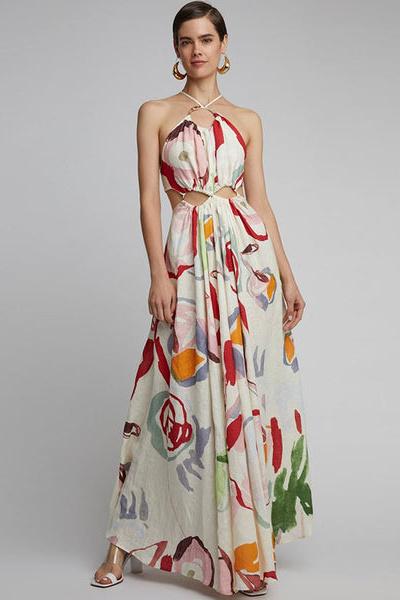 18% İndirimRuth Baskılı Cut-Out Maxi Elbise