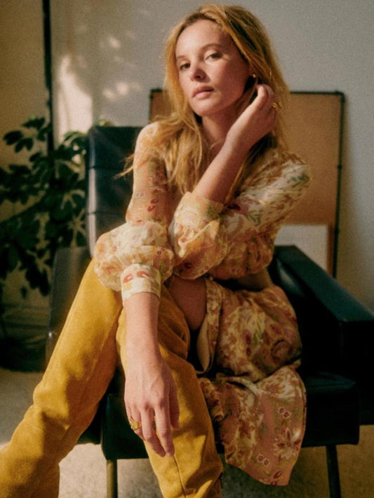 Sadie Çiçek Baskılı Şifon Düğmeli Kuşaklı Midi Gömlek Elbise