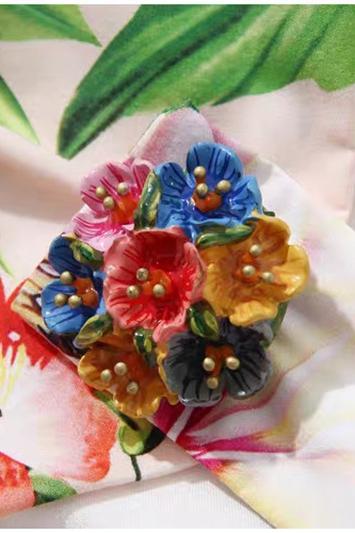 51% İndirimSaten Çiçekli Bölmeli Göğüs Düğmeli Midi Elbise