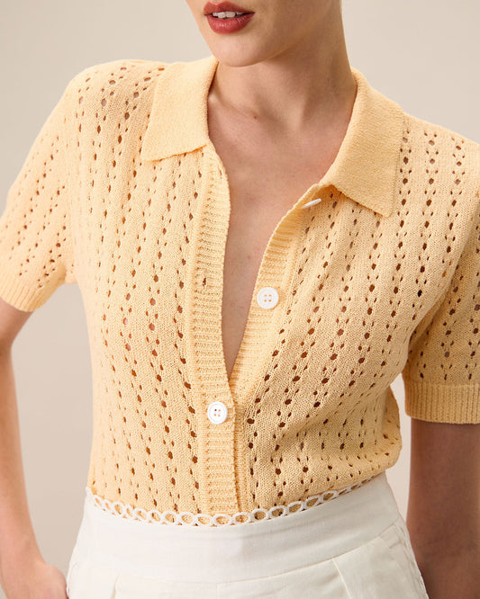 47% İndirimSarı Yakalı Delikli Örgü Kazak