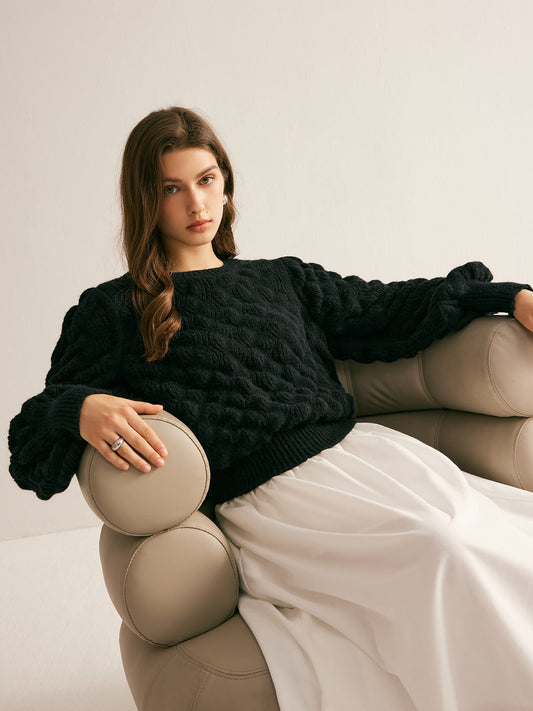 Yün Karışımlı Zarif Kıvrımlı İnce Kazak
