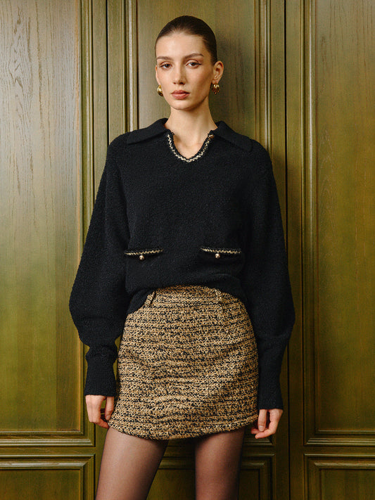 Zarif Kontrast Bağlamalı Anahtar Deliği Yaka Polo Kazak
