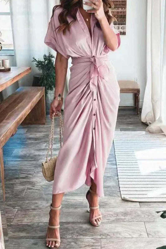 Yvaine V Yaka Kıvrımlı Maxi Elbise