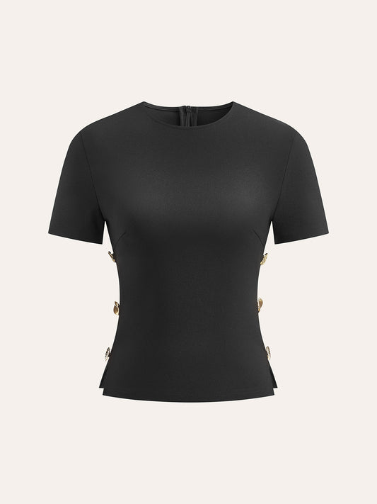 31% İndirimCut-Out Yan Metal Detaylı Fermuarlı Tişört