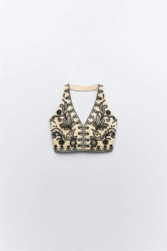 43% İndirimCynthia U Yaka Çiçek Aplikeli Yelek