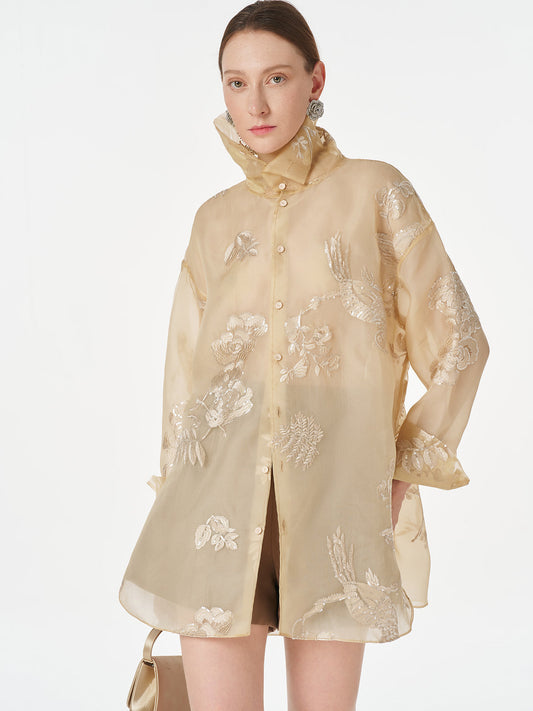35% İndirimDik Yaka Nakışlı Çiçekli Üst
