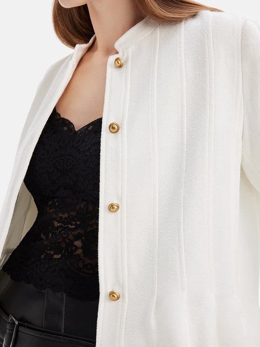 30% İndirimDik Yaka Düğmeli Volanlı Peplum Bluz