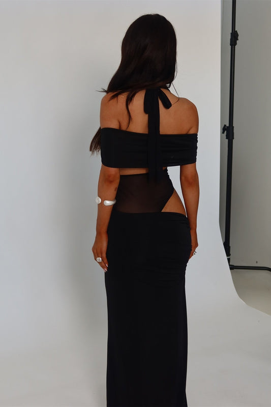 29% İndirimDianna Siyah Dantelli Uzun Elbise