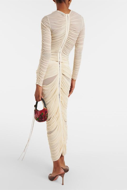 20% İndirimDoris Baskılı Düğümlü Büzgülü Uzun Elbise