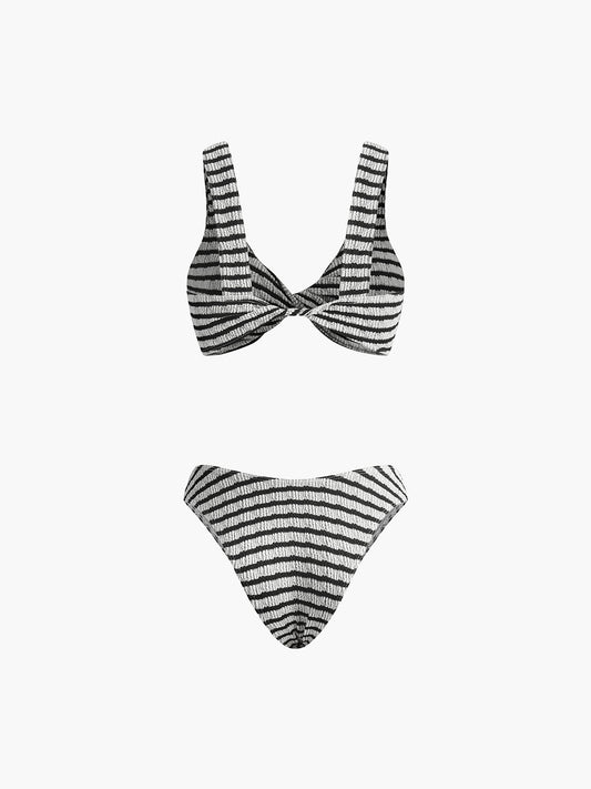 34% İndirimDüğümlü Çizgili Örgü Bikini Takımı