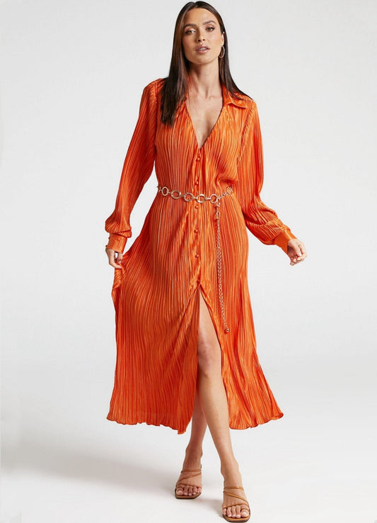 33% İndirimEartha V Yaka Plisse Midi Gömlek Elbise
