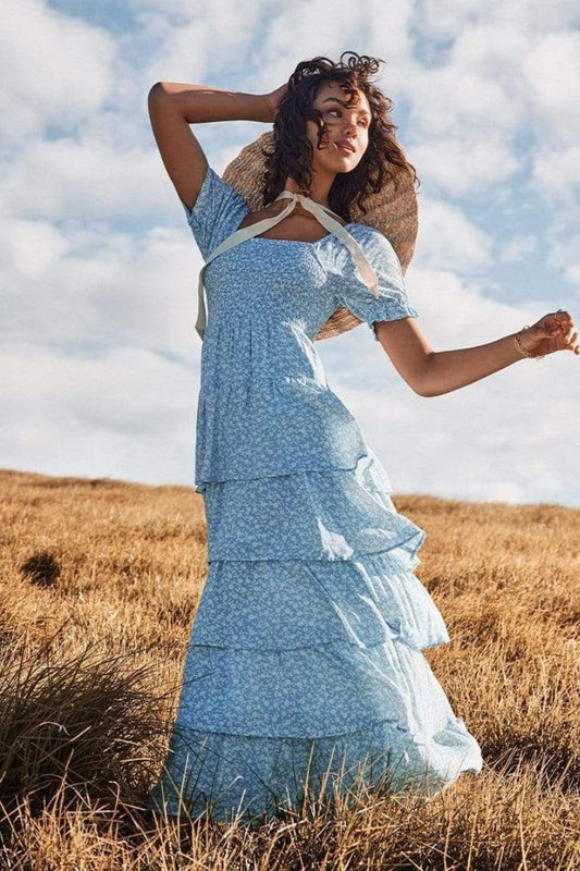 29% İndirimEdita Ditsy Çiçek Omuzları Bağlamalı Midi Elbise