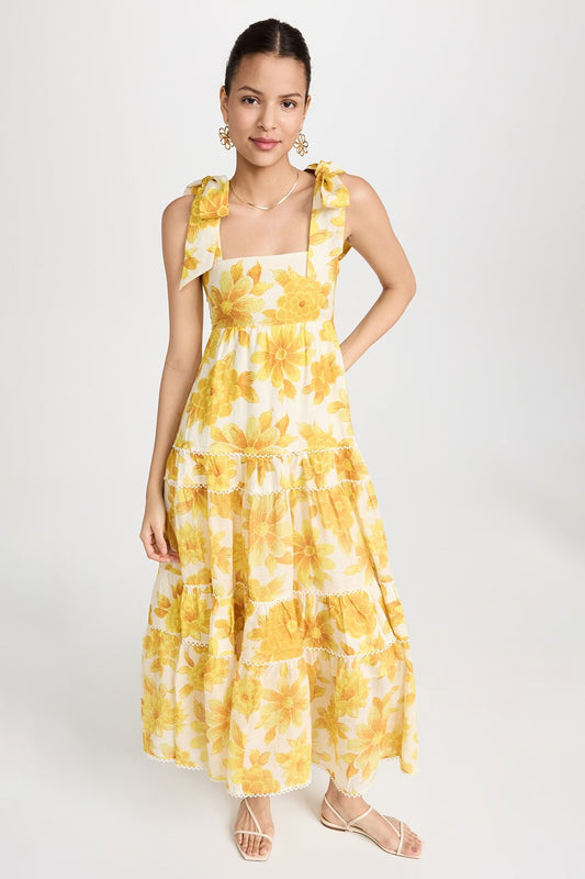Evelyn Çiçek Baskılı Katlı Midi Elbise