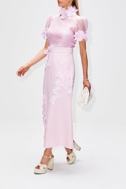 44% İndirimEvelyn Çiçek İşlemeli Keten Midi Sütun Elbise