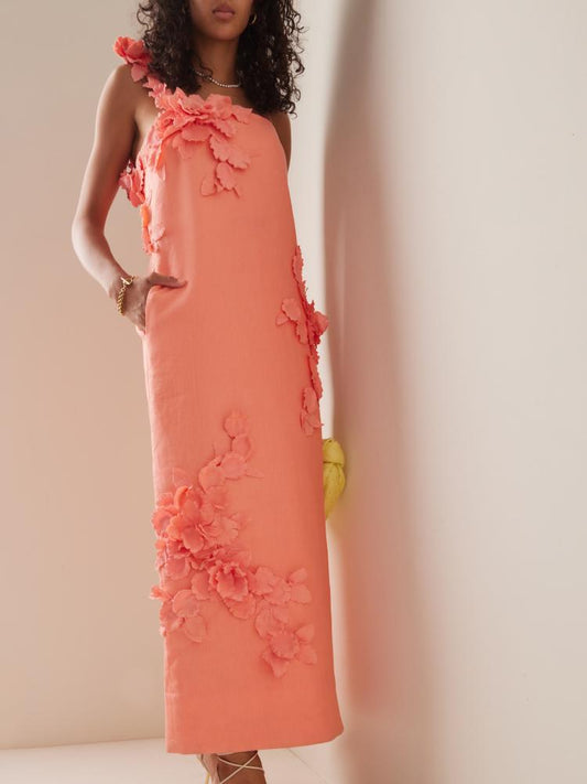 32% İndirimEvelyn Çiçek Aplikeli Tek Omuzlu Maxi Elbise