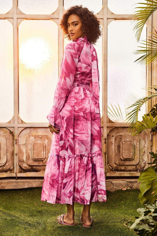 30% İndirimGeorgia Çiçek Desenli Kuşaklı Midi Elbise