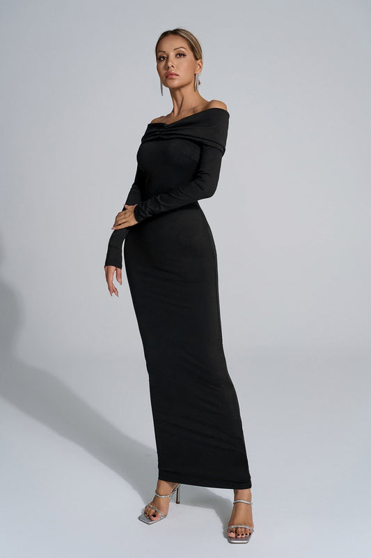 31% İndirimIsabella Siyah Uzun Kollu Bodycon Maxi Elbise