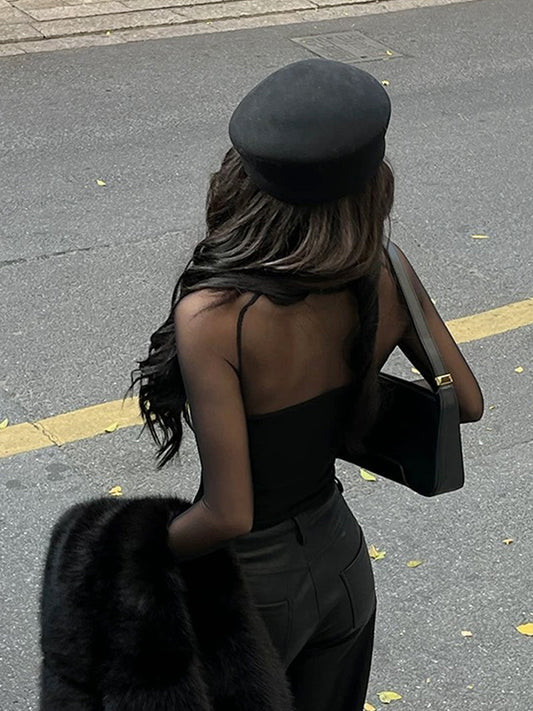 25% İndirimKare Yaka Şeffaf Panel Kırpılmış Tişört