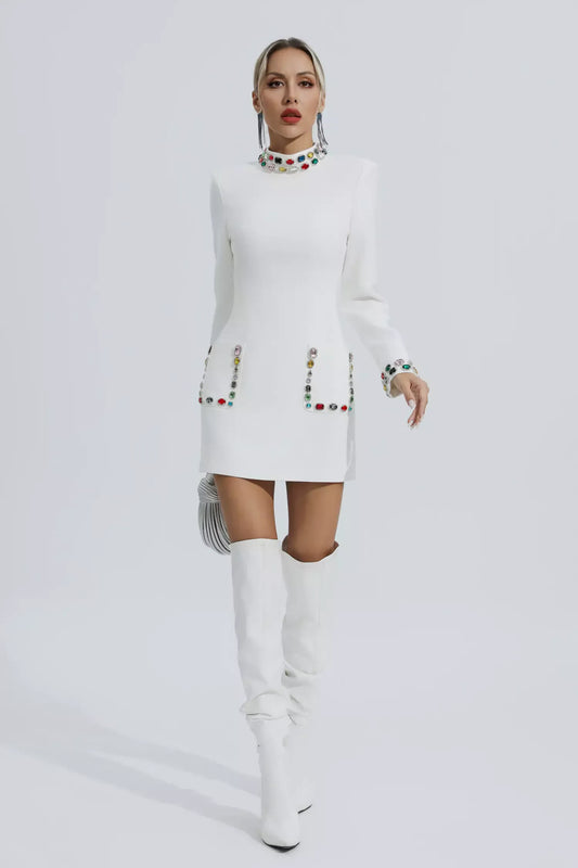5% İndirimKarina Beyaz Pırlanta İşlemeli Mini Elbise