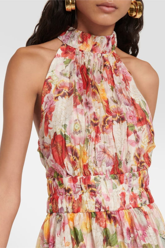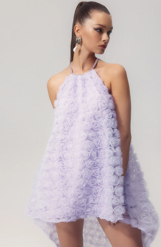 Michaelia Çiçek Aplikeli Boyundan Bağlamalı Mini File Elbise