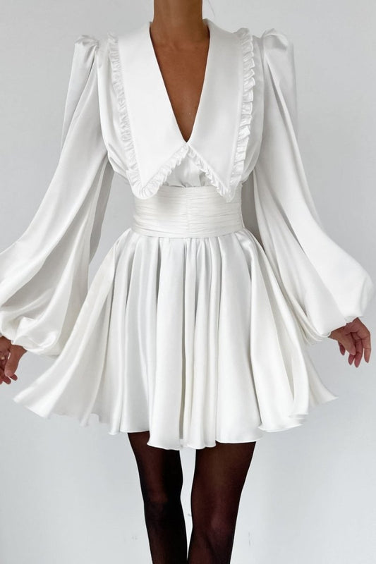 21% İndirimMilena V Yaka Fener Kol Mini Elbise