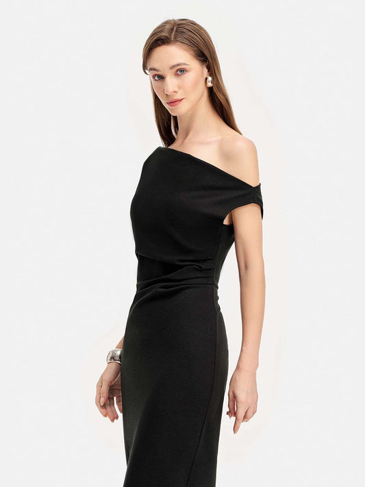 26% İndirimAsimetrik Omuz Açık Uzun Kollu Midi Elbise