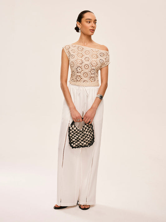 42% İndirimAsimetrik Omuz Açık Yarı Şeffaf Tığ İşi Üst