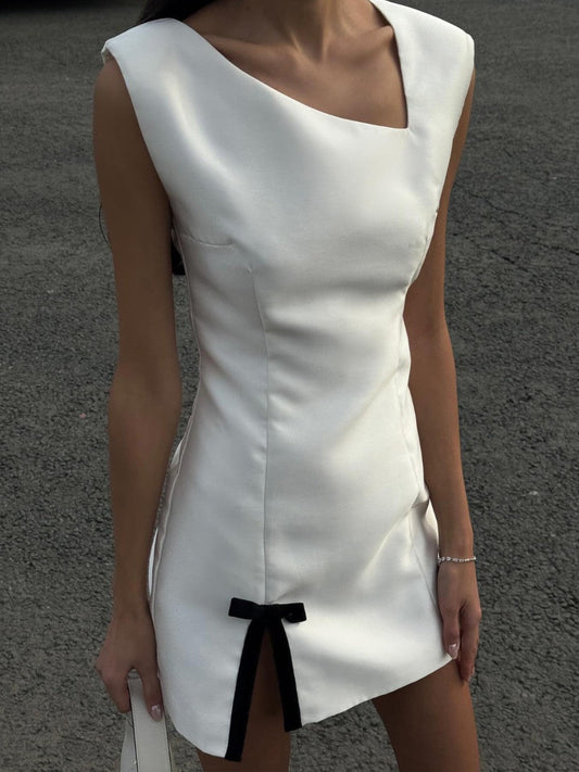 18% İndirimAsimetrik Fiyonk Dekorlu Bölünmüş Kısa Elbise