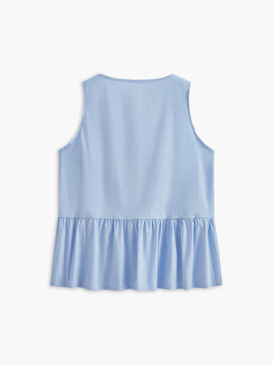 Pamuklu Düz Tekne Yaka Büzgülü Bel Kolsuz Bluz