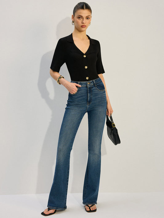 Balıkçı Yaka Ribana Fermuarlı Bluz