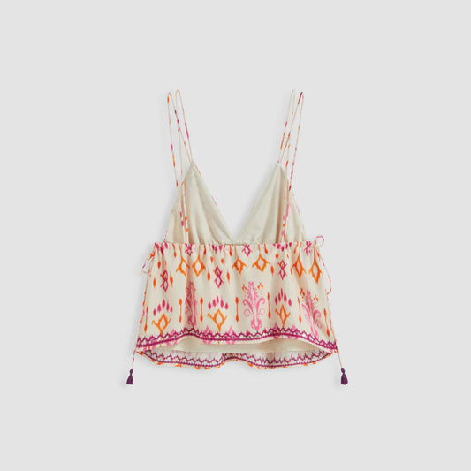 Boho Desenli Asimetrik Yakalı File Drapeli Bluz