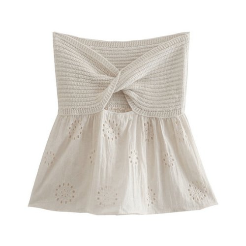 Éclatante Omuz Açık Dantel Bağlamalı Kısa Bluz