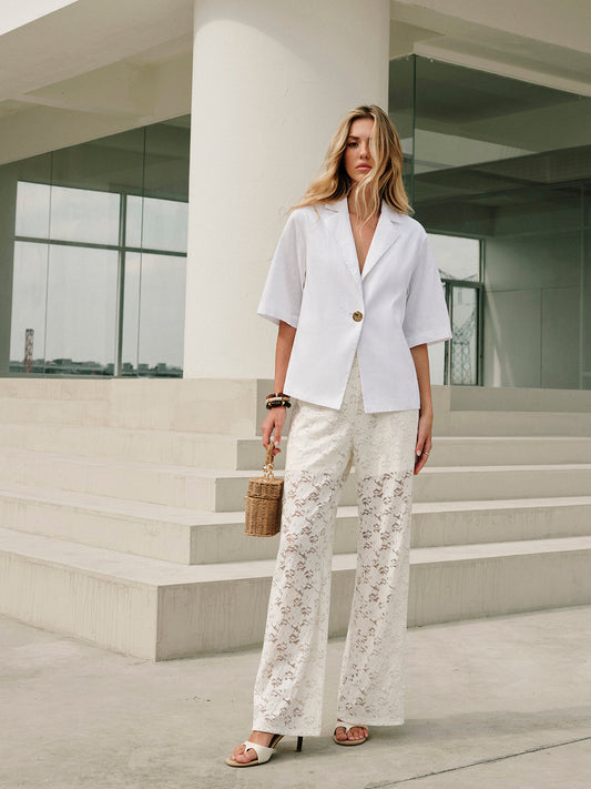 Kumaş Düğmeli Şeffaf Dantel Bluz
