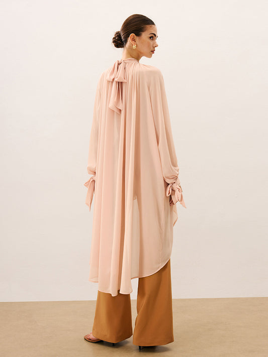 Yarı Şeffaf Bağcıklı Şifon Bluz