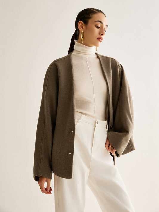 Büyük Boy Yuvarlak Yaka Kontrast Kesim Düğmeli Ceket