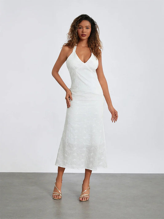Eileen Japon Balığı İşlemeli Maxi Slip Elbise