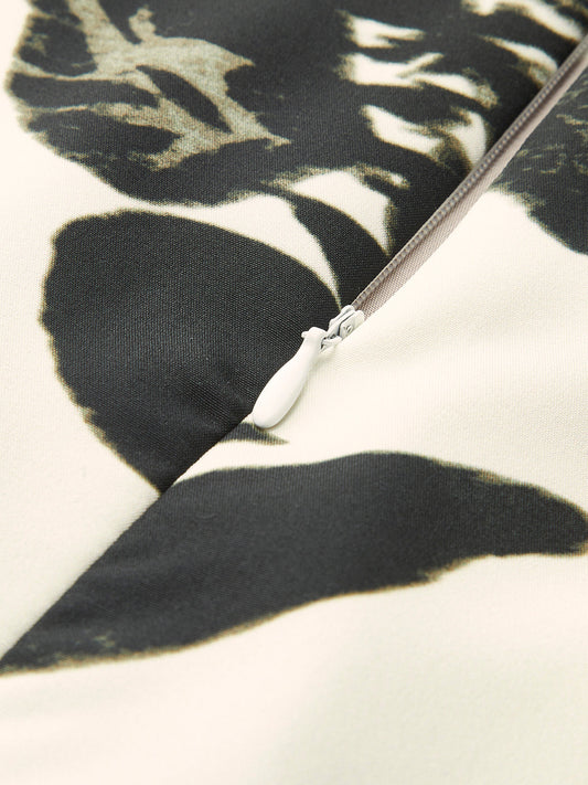 Çiçek Desenli Straplez Elbise