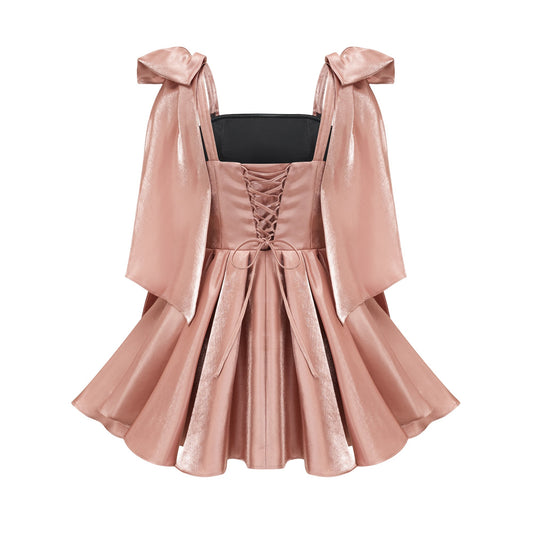 Candice Büzgülü Korse Düşük Omuz Saten Mini Elbise