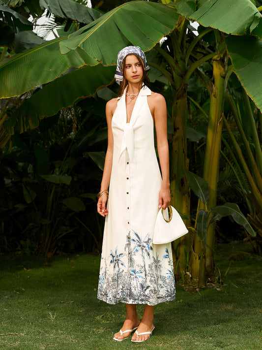 Büyük Boy Palmiye Sırtı Açık V Yaka Elbise