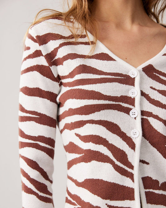 45% İndirimKahverengi V Yaka Zebra Desenli Triko Hırka