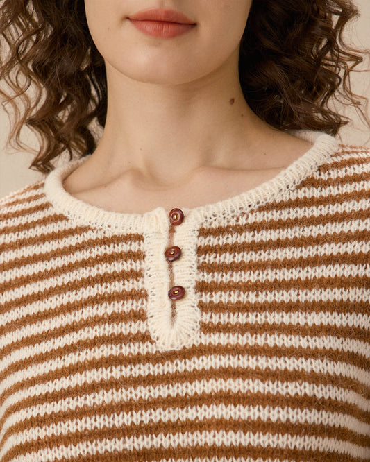 44% İndirimKahverengi Çizgili Düşük Omuzlu Kazak