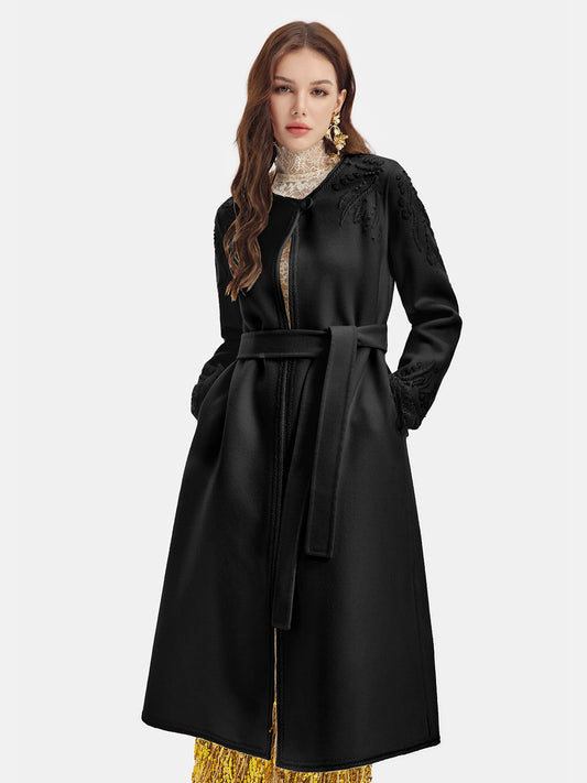 36% İndirimKaşmir Halat Boncuklu Nakışlı Çift Yüz Kaban