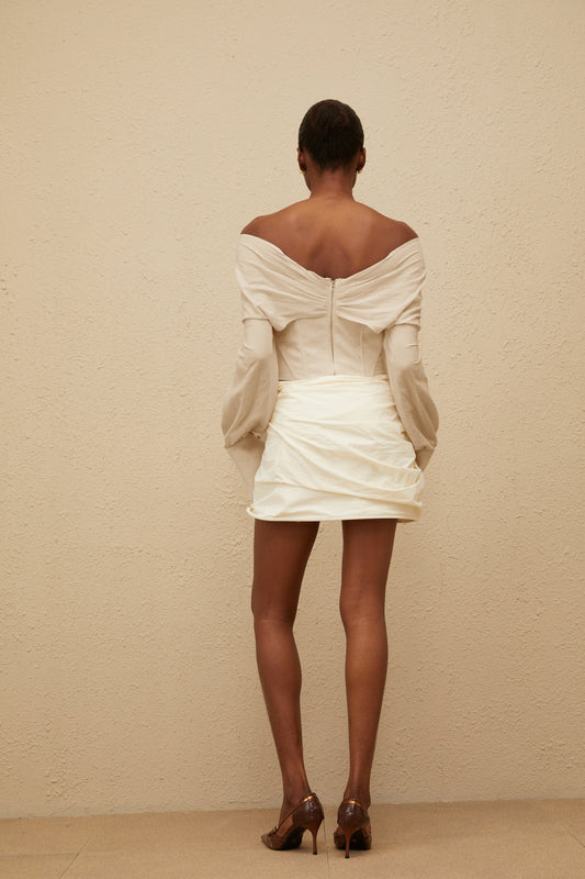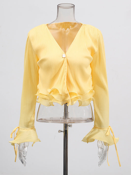 Éclatante Omuz Açık Dantel Bağlamalı Kısa Bluz