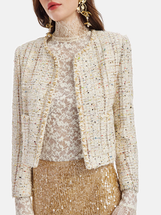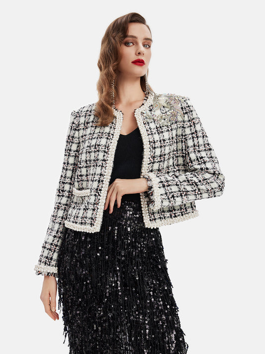30% İndirimFransız Yün Karışımlı Boncuklu Ekose Ceket