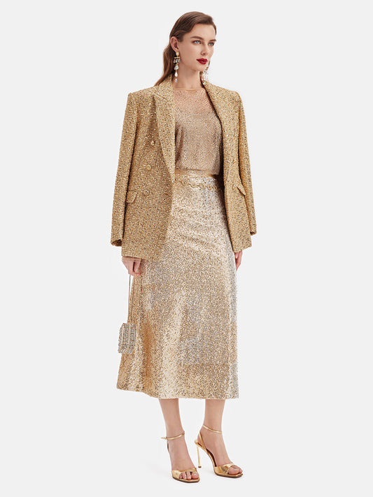 34% İndirimGöz Alıcı Altın Tüvit Kruvaze Ceket
